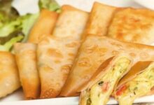 • فرد البف باستري، وحشوها بمقدار ملعقة كبيرة من الجبنة، ثمَّ طويها، وإغلاقها جيداً بواسطة الشوكة.