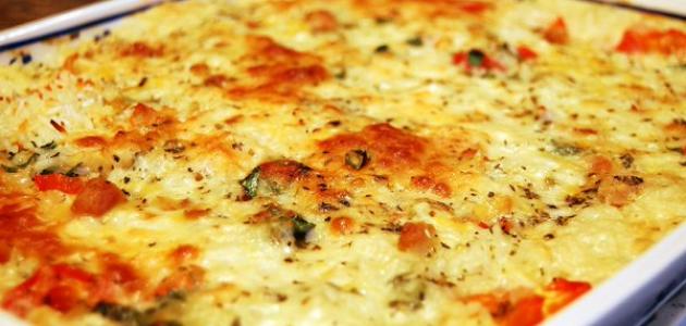 - نسكب مزيج الكريمة على البطاطا، ثمّ نوزّع برش الجبن على الوجه.