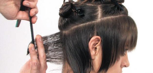 - يُقص الشعر المربوط أسفل الربطة الثانية بحركات قص صغيرة، ولا يُقص مرةً واحدة.