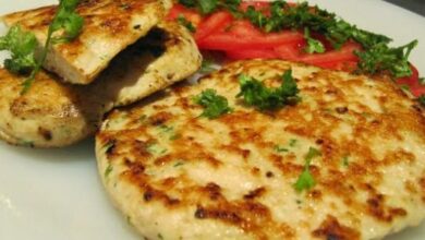 • نغسل صدور الدجاج، نتبلها بالقليل من البهارات: الملح، والفلفل، والزعتر المجفّف، والشطة.