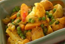 • نضع الخضار في وعاء عميق، ونتبّلها ببقيّة البهارات، ونخلطها جيّداً.