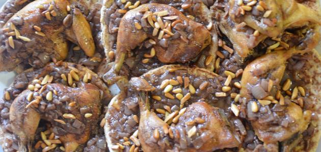 - تضاف قطع الدجاجة المغسولة جيداً وتقلب، ثم يتم تغطيته بورق القصدير وإدخال الصينية إلى الفرن؛ الى أن ينضج الدجاج.