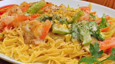- نصف كوب من الفلفل الرومي المقطع إلى شرائح.
