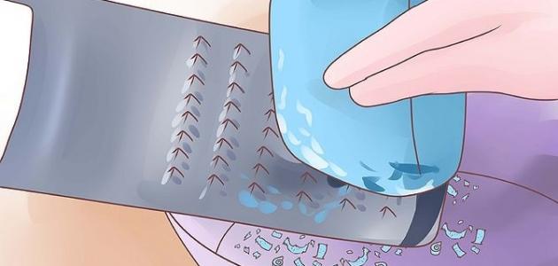 - تقطيع الصّابون إلى رقائق صغيرة الحجم باستخدام المبشرة، أو محضرة الطّعام.
