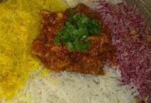 • تصفية الأرز، ووضعه في الطبق بشكل متساوي.