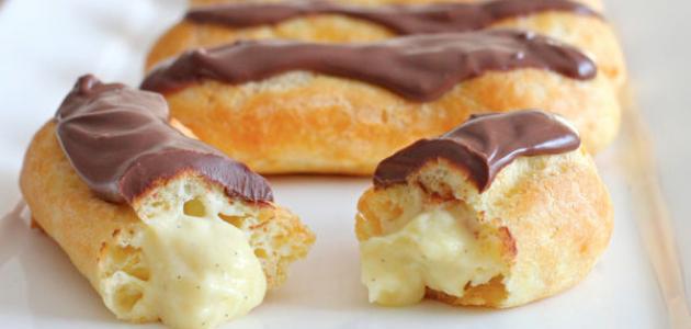 • احشي الإكلير بحشوة الكريمة، وغطّسيها في صلصة الشوكولاتة، وقدّميها.