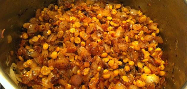 - ثلاث حبات بصل كبيرة، ومقطعة مكعبات صغيرة.