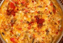 - نخفق حبّات البيض في وعاء آخر، ونضيف إليه الفلفل الأسود، والملح، ثمّ نسكب المزيج فوق الخضار في الوعاء السابق.
