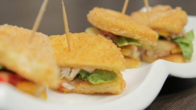 - أضيفي للساندويش شرائح من مخلل الخيار، والطماطم، وبعض الخس، وفوقه كمية من الدجاج، ومن ثم يصبح جاهزاً للتقديم.
