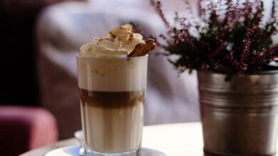 - نسكب الكابتشينو في أكواب، ونزيّنه بالكريمة البيضاء، والشوكولاتة.