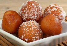 • نضيف السكر، وجوز الهند، واللبن، والبيكنج باودر، ونخلط المكوّنات مع بعضها، حتّى نحصل على عجينة متماسكة.