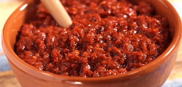 • نحضر كمية الثّوم ونقشّرها ونُقطّعها جيداً، ثمّ نحضر كمية الفلفل الحار مع الثّوم ونضعهما في الخلاط الكهربائي، ونخلطها مدّة خمس دقائق حتى تُصبح مزيجاً ناعماً.