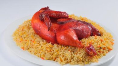 • اسلقي مكعّبات الدجاج في الماء، ونكّهيها بالملح، والبهارات حتى تنضج، ثمّ صفّيه من الماء واحتفظي بمرقته جانباً.