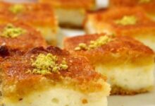 - نُزيّن البسبوسة بالفستق الحلبيّ، ثمّ نقدّمها باردة.