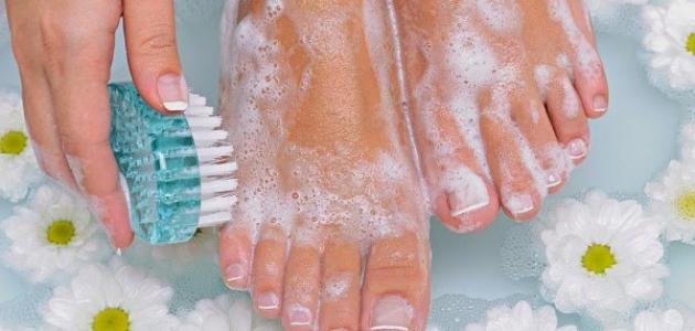 - ثم تفرك القدمين به لعدة دقائق للتخلص من الخلايا الميتة والأوساخ والشوائب.