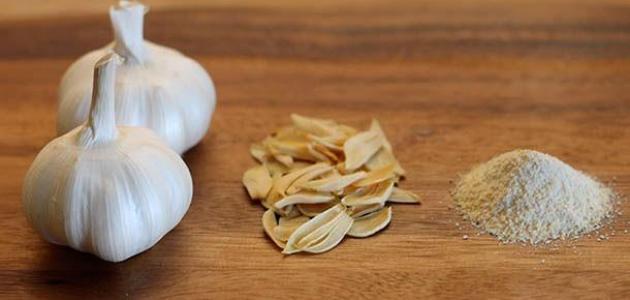 - تُترك شرائح الثوم حتى تبرد عندما تجف تماماً، ثم تُطحن باستخدام مطحنة القهوة أو التوابل، أو الخلاط الكهربائي، أو الهاون اليدوي؛ لحين تفتيتها تماماً والحصول على القوام المطلوب.