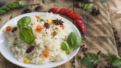 - نُضيف الماء إلى أن تغلي المكوّنات ونضع الأرزّ، ونحرّك ونغطّي القدر، ونتركه على نار هادئة جدّاً لمدّة عشرين دقيقة.