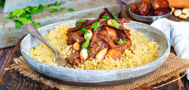 • يقدم الطاجن مع الكوسكوس وشرائج البرتقال.