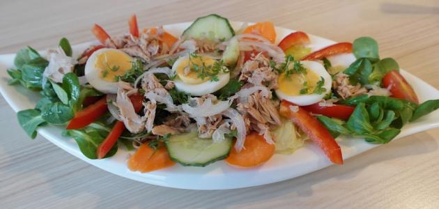 تصفية التونة من السوائل ثمَّ وضعها في طبق عميق، وإضافة البصل على التونة، وتقليب التونة والبصل بالشوكة لتخلتط المواد.