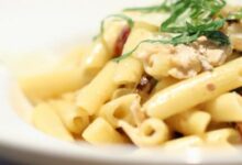 - نسلق المعكرونة بالماء المملّح المغلي بحسب التعليمات المدوّنة على العبوة ثمّ نصفيها من الماء بعد نضجها.