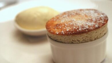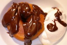 • بعد أن تنضج نضعها في طبق التقديم، ونضع على وجهها المكسرات الناعمة.