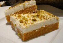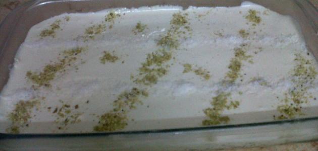 - وزع الكريمة على حلى السميد، ثمّ زينه بالفستق الحلبي.