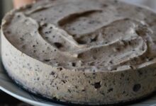 - صب الخليط في القالب مع طرق القالب طرقات خفيفة لمساواة السطح، ساوِ سطح العجين بواسطة يدين مبللتين بالماء.