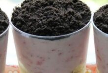- نخلط البسكويت المطحون مع الزّبدة جيّداً، ثمّ نرصّه في أكواب التّقديم، ونضعه في الثلّاجة لمدّة عشر دقائق.