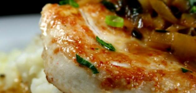 - نضع نصف كمية الزيت النباتي والزبدة المذابة في مقلاة على نار متوسطة، ثم نضع صدور الدجاج.