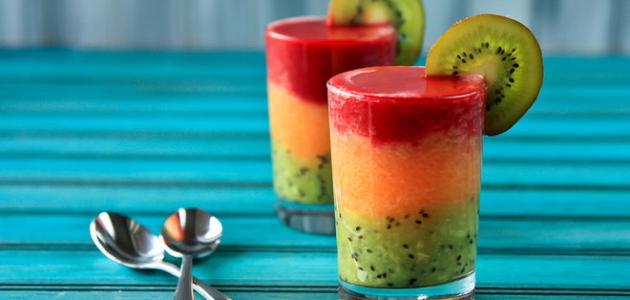 • في كاسات التقديم، نضع العصير على شكل طبقات، نسكب عصير المانج مثلاً، ومن ثمّ نسكب طبقة عصير الكيوي، وأخيراً نضيف طبقة عصير الفراولة، وهكذا أصبح عصير هافانا جاهزاً.