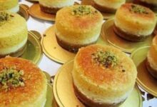 • صف العجينة في صينية الفرن، والتزيين بحبات الفستق الحلبي، أو الصنوبر.