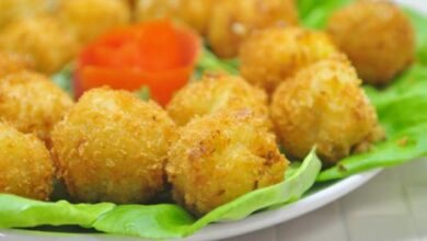 - نُشكل كفتة السردين إلى كرات بالحجم المطلوب، ونضعها في صينية، ونضع فوق كلّ كرة حلقة من الفلفل الأخضر والطماطم.