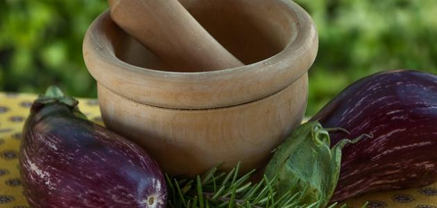 - نُحدث شقّاً وسط الباذنجان، ونضع القليل من الملح ثمّ نغلقه ونتركه يصفّى فوق وعاء ليومٍ كامل.