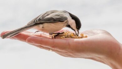 - فتح القفص، وتقديم الطعام بكفة اليد، ليشعر بالاطمئنان.