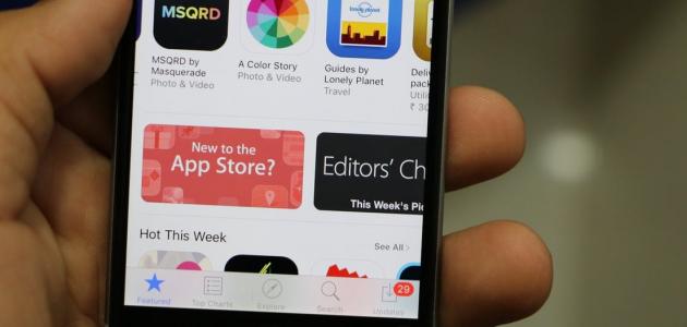 - فتح تطبيق الآب ستور App Store على الجهاز.
