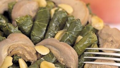 - نحشو البطة بالأرز الذي طبختاه ونغلق بطنها بواسطة عيدان، أو بواسطة خيط.