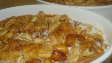 - نضع الصينية في الثلاجة، ونقدمها باردة.