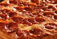 - إدخال صينية البيتزا إلى الفرن وخبزها لمدة ثلاثين دقيقة أو حتى يصبح لونها ذهبي ثم إخراجها من الفرن وتركها تبرد قليلاً ثم تقديمها.