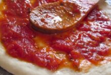 • دهنُ صواني البيتزا بقليلٍ من الزّيت وفرد العجينة في الصّينية ثمَّ دهنها بطبقةٍ من الصّلصة.
