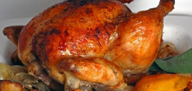 • نخرج الدجاج ونقدمه ساخناً مع البطاطا المشوية.