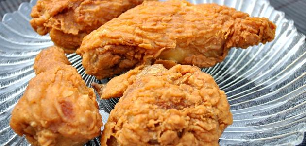 - وضع قطع الدجاج داخل الكمية المتبقة من الطحين إلى أن تتم تغطية كلّ قطعة، ثمّ وضعها داخل الزيت وخفض درجة الحرارة إلى درجة متوسطة، وتركها دون تقليبها إلى أن تتقرمش جيداً.