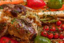 - نضعه في صينية الفرن ونتركه لمدة خمس عشرة دقيقة حتى يتحمر.
