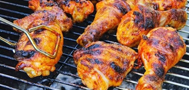 - بعد نضج الدجاج، أحضري فحمة مشتعلة وضعيها في طبق زجاجي صغير، ثُم ارفعي الغطاء عن الصينية وضعي الفحمة وسط الدجاج واسكبي القليل من الزيت وغطيها، وبهذا ستحصلين على نكهة الدجاج المشوي على الفحم.
