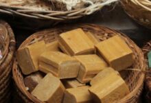 • نضع العطر في الأوعية الزجاجية، ونتركه حتى يأخذ شكل الوعاء لمدّة نصف ساعة، ومن ثم نغطيه بعد أن يجف.