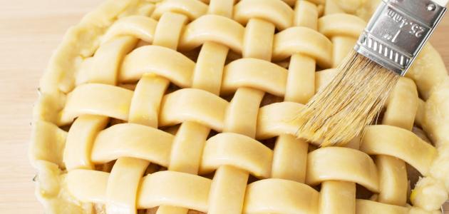 • فرد العجينة بعد إخراجها من الثلاجة بالنشابة، ووضعها في صينية الفطيرة.