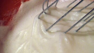 • إضافة القشطة، والفانيلا، والاستمرار في الخفق إلى أن تتجانس المكوّنات معاً ويتكون لدينا صوص كثيف.