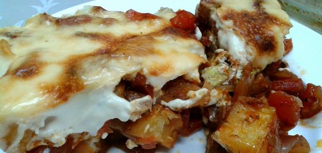 - نخرج الصينيّة من الفرن، وننثر القليل من جبنة البارميزان على الوجه، ونقدّمها.