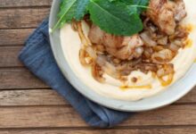 • ربع كوب من كلٍ من: جبنة الدهن، و مرق الدجاج.