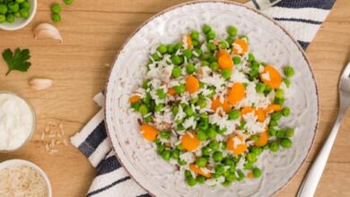 • تقديم الأرز بالخضار ساخناً.
