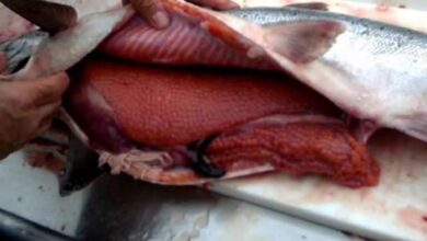 - ننكه المكونات بالفلفل الأسود، والملح، والفلفل الحار، وبهارات السمك، ونمزج المكوّنات معاً بشكل جيّد.